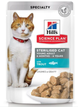 "Votre chat va adorer le goût délicieux de ces tendres bouchées en sauce HILL'S SCIENCE PLAN Sterilised Cat Adult au poulet. Le parfait équilibre entre goût et nutrition avec une formule unique de gestion de poids pour aider les jeunes chats stérilisés à rester minces.