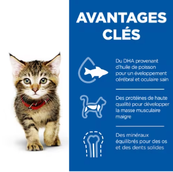 Les croquettes HILL’S SCIENCE PLAN Kitten au poulet sont spécialement formulées pour donner aux chatons un bon départ dans la vie et les aider à bien grandir et à s’épanouir pleinement.