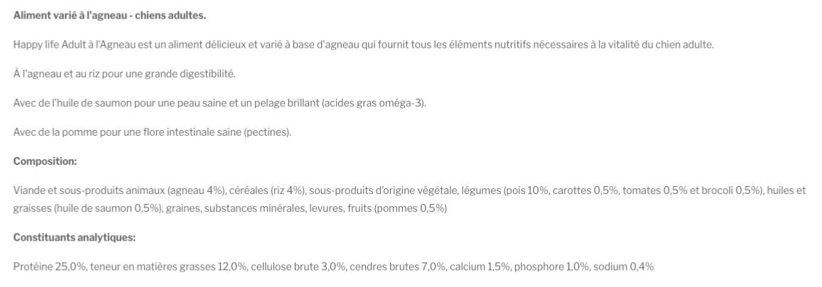 Happy life Adult à l'Agneau est un aliment délicieux et varié à base d'agneau qui fournit tous les éléments nutritifs nécessaires à la vitalité du chien adulte