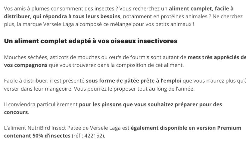 NUTRIBIRD INSECT PATEE 250G