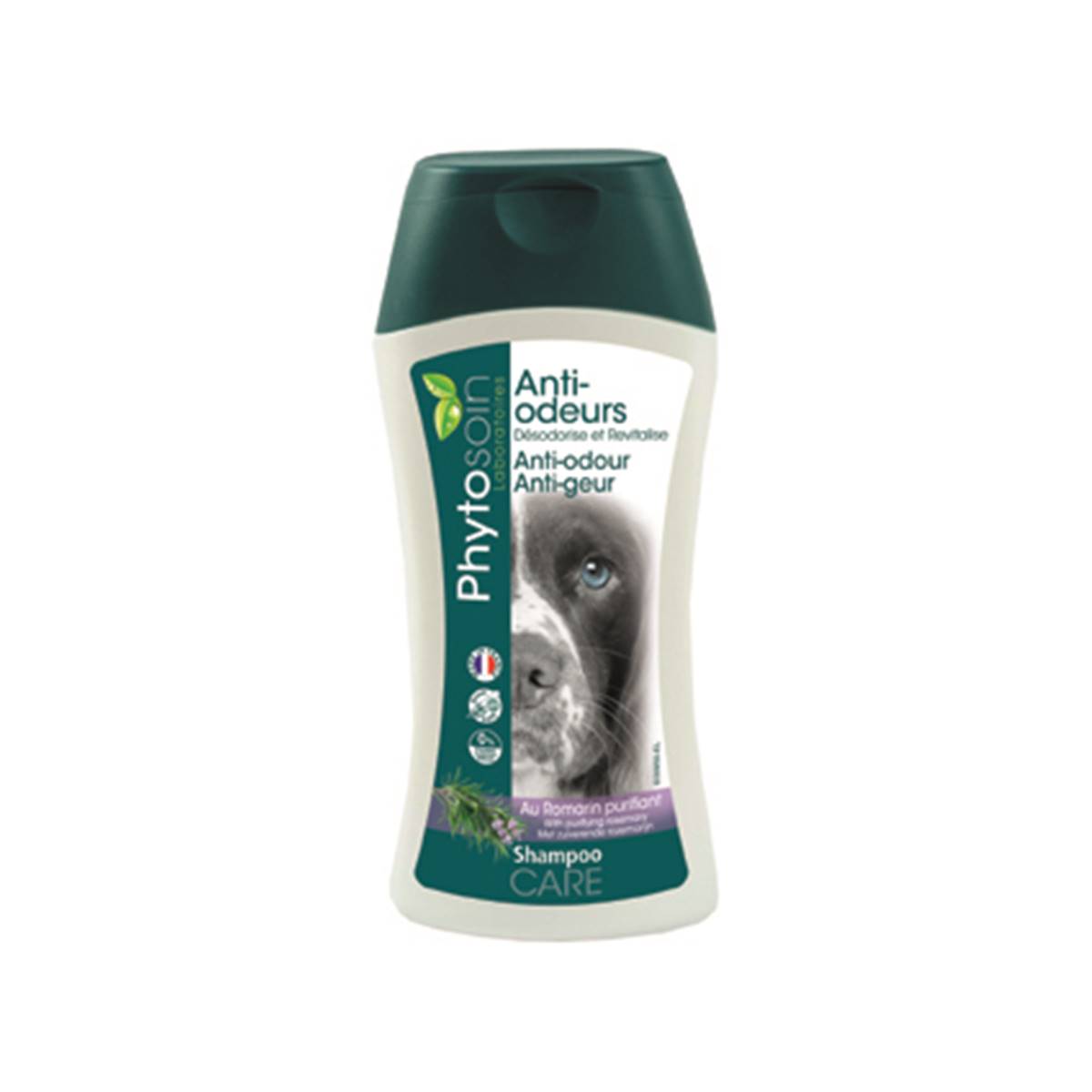 Le shampooing Phytosoin Anti-Odeurs a été spécialement conçu sous contrôle pharmaceutique pour supprimer les mauvaises odeurs venant du pelage de votre chien et éviter leur retour. Formulé sans colorant, silicone ou parabène et avec un parfum hypoallergénique, il est naturellement doux pour la peau de votre animal. L’extrait végétal de romarin contenu dans le shampooing permet d’arrêter la dégradation des matières organiques (poils morts, sébum, …) présentes sur la peau et les poils de votre chien et responsable du développement des mauvaises odeurs. Nous fabriquons ce shampooing dans notre usine du Nord de la France où, depuis 60 ans, notre savoir-faire et notre amour des animaux nous poussent à trouver le meilleur des plantes pour vous proposer le meilleur de la cosmétique canine.